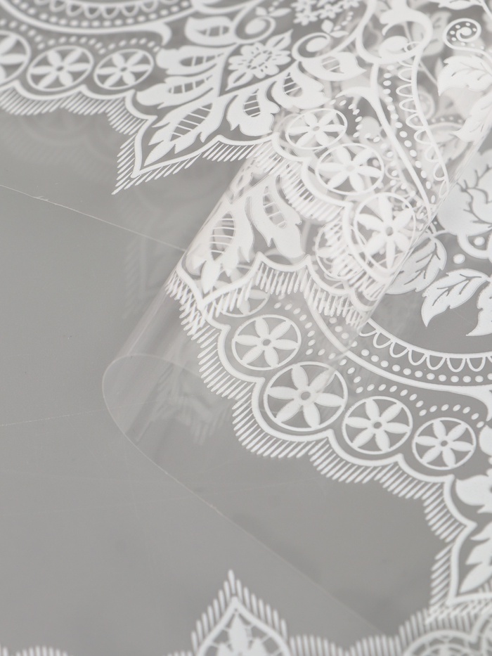 - Универсальная тематика: Нейтральный прозрачно-белый дизайн сочетается с любыми цветами: розами, тюльпанами, хризантемами, герберами. Узор выглядит уместно и в романтических букетах, и в строгих интерьерных композициях.