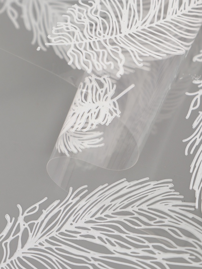 Лёгкость пера для изящных букетов. Плёнка для цветов «Перышки» 0,6×9,3 м – это прозрачный рулон с белым рисунком, имитирующим нежные перья. Материал толщиной 40 мкм сохраняет форму при упаковке живых цветов и сувениров. Дизайн подходит для 14 Февраля, 8 Марта и повседневных композиций.