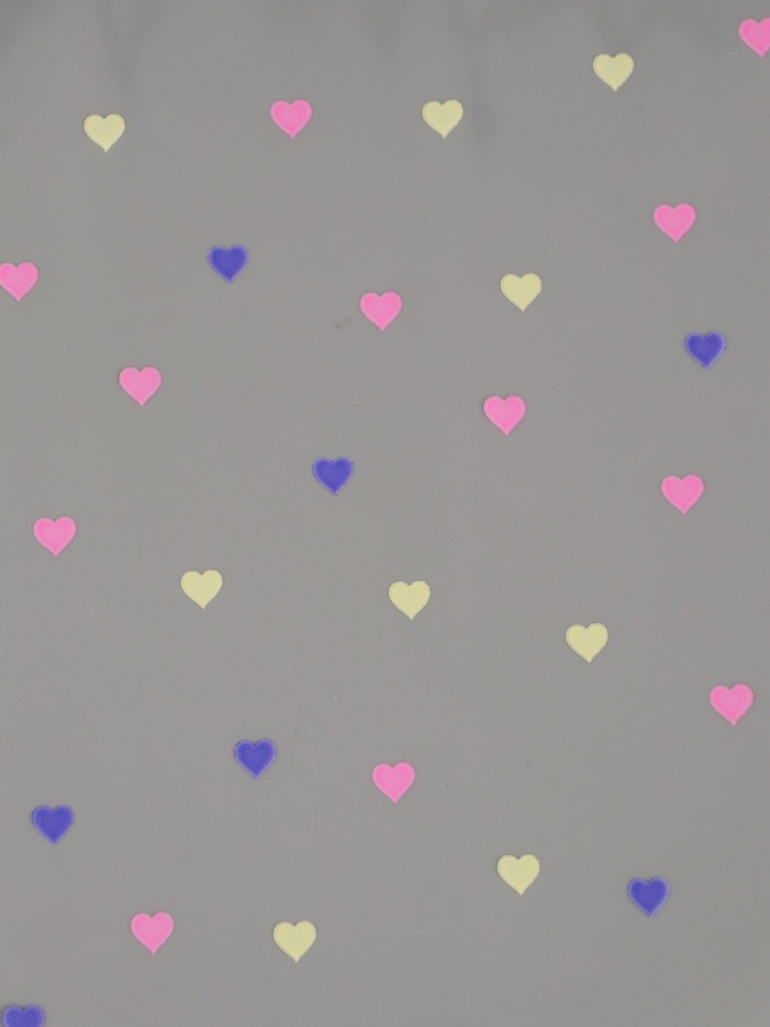 - Рисунок «разноцветные сердечки»: На прозрачной основе изображены россыпи сердечек в розовых, красных и жёлтых оттенках. Узор напоминает праздничное конфетти и создаёт радостное, яркое настроение. Краска держится плотно, не осыпается при намокании и трении.
