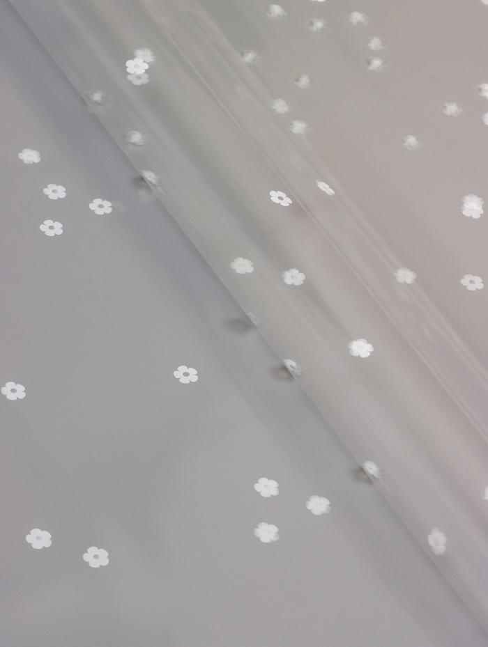 - Элегантный дизайн: Белый рисунок с мотивами цветочных узоров добавляет утонченности любой обстановке. Прозрачная база плёнки придает легкость и воздушность любому декору.