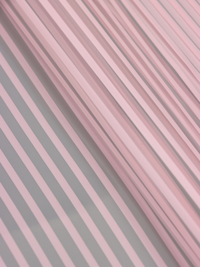 Подари изысканность любому празднику! Прозрачная пленка с нежно-розовыми узкими полосами – это идеальный выбор для создания стильной упаковки и декора. Ее утонченные полосы в сочетании с прозрачностью добавляют элегантности каждому событию.