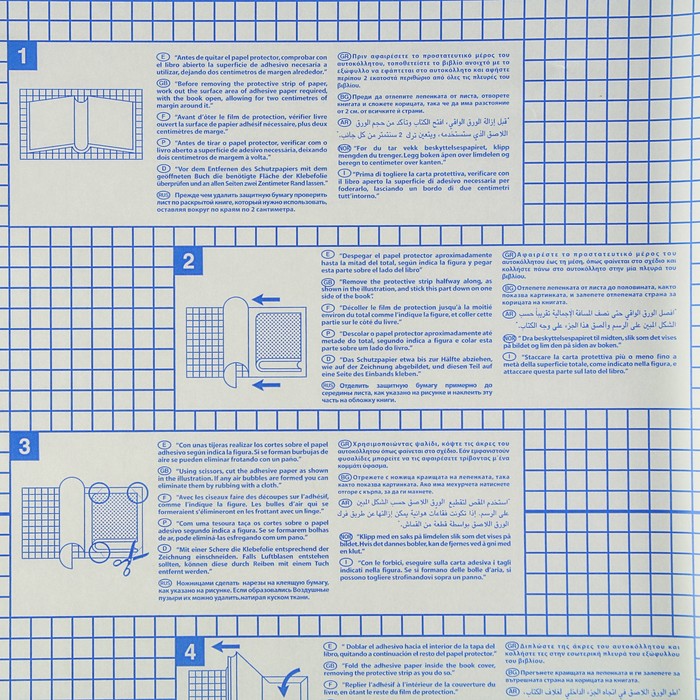 Используйте самоклеящуюся прозрачную плёнку для защиты книг, документов, тетрадей, папок и других предметов. Она ровно ложится, не образуя пузырьков. Клетка на подложке позволит вам точно вырезать необходимый элемент.