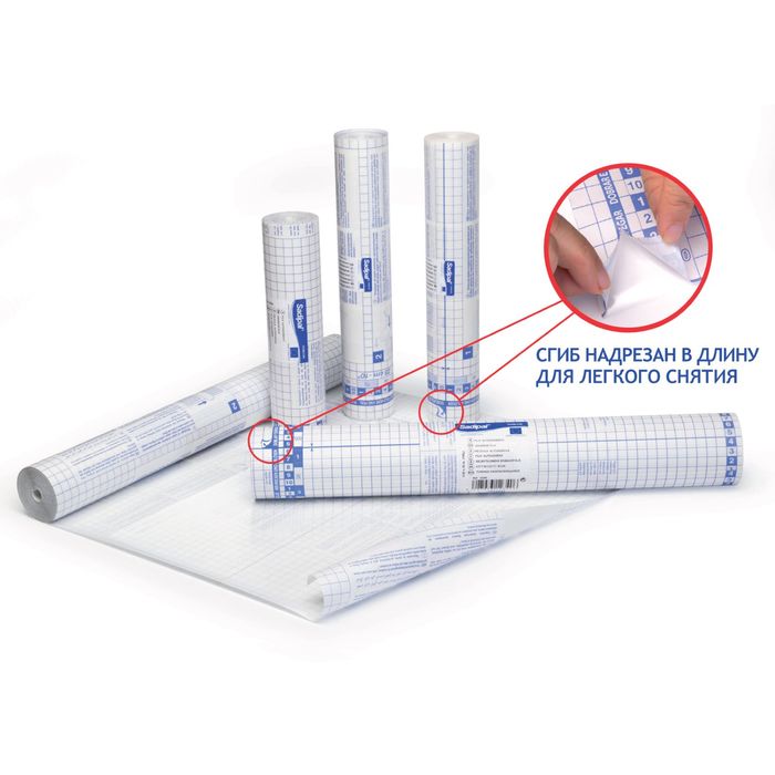 Используйте самоклеящуюся прозрачную плёнку для защиты книг, документов, тетрадей, папок и других предметов. Она ровно ложится, не образуя пузырьков. Клетка на подложке позволит вам точно вырезать необходимый элемент.