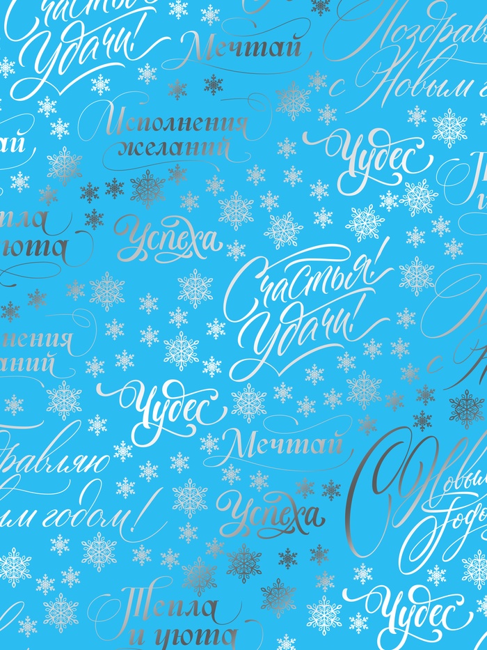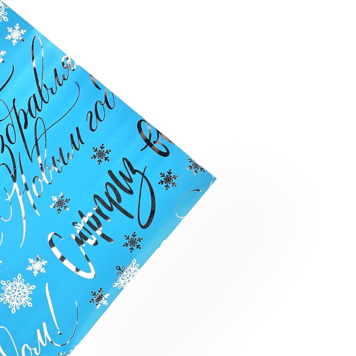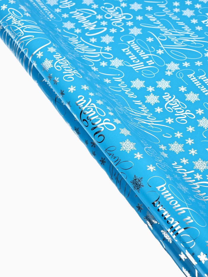 Плёнка упаковочная голография «Новогодние пожелания», голубая 100×70 см