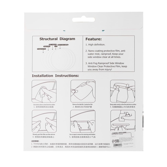 Пленка защитная “Антидождь” предназначена для защиты стекол автомобиля от дождя, грязи и других внешних воздействий. Размер пленки составляет 170х200 мм, что позволяет легко установить ее на любое стекло автомобиля. Она имеет покрытие, которое обеспечивает быстрое стекание воды со стекла и улучшает видимость во время дождя. Пленка легко наносится на стекло и не требует специальных навыков или инструментов.