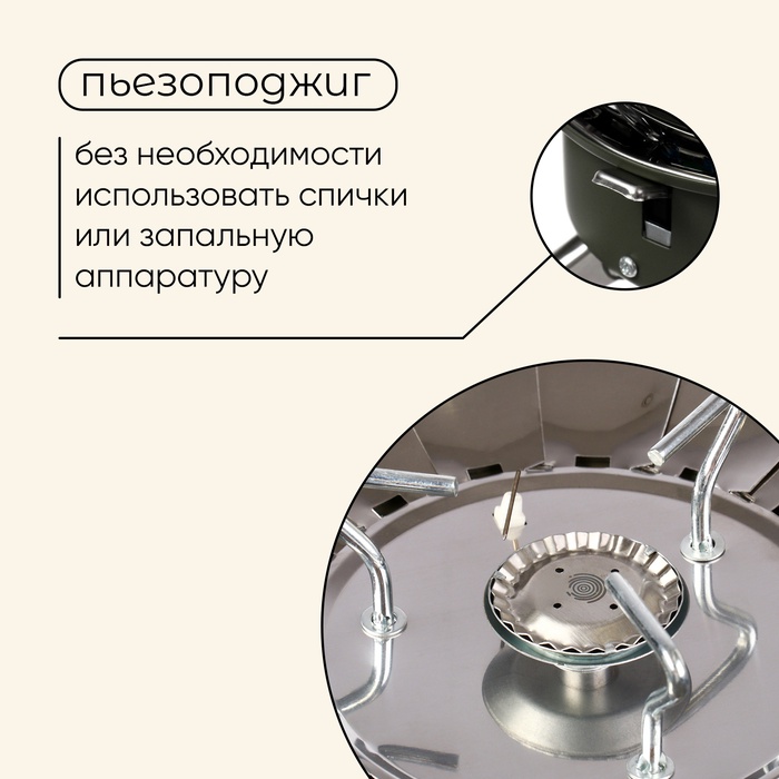 - Пьезоподжиг позволяет разжечь огонь без зажигалки.