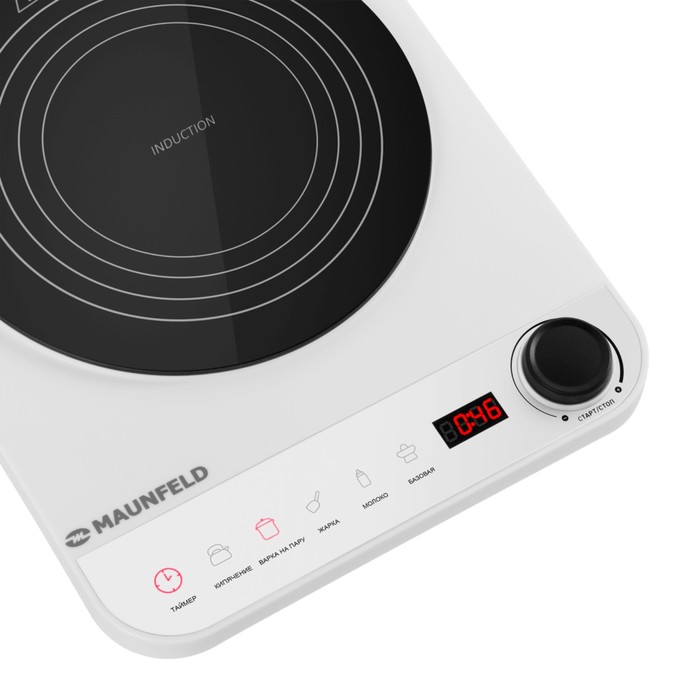 Плитка индукционная MAUNFELD EFI271MWH, 2000 Вт, 1 конфорка, таймер, бело-чёрная