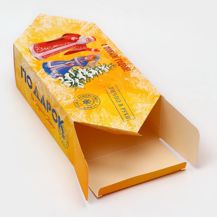 Коробка выполнена в форме конфеты и оснащена удобным механизмом складывания, что позволяет легко собрать и разобрать её при необходимости.