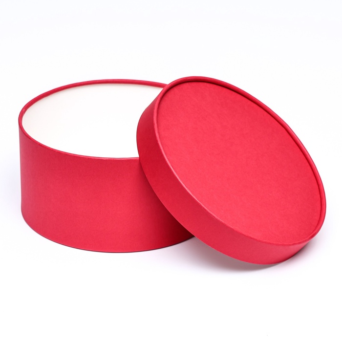 Как устроена: Коробка выполнена из плотного картона 400 г/м², оклеенного бумагой насыщенного красного цвета. Края крышки и дна завальцованы — загнуты внутрь, что исключает острые углы и придаёт конструкции дополнительную жёсткость. Крышка надевается на основу, фиксируется за счёт трения. Внутренняя поверхность чистая, без рисунка. Красный цвет равномерный по всей поверхности. Круглая подарочная коробка «Рубин» решает проблему премиальной упаковки для статусных подарков. Завальцованные края, плотный картон и насыщенный красный цвет создают ощущение дорогого, качественного презента. Берите для косметики, сладостей и сувениров — такая коробка подчеркнёт значимость вашего подарка.