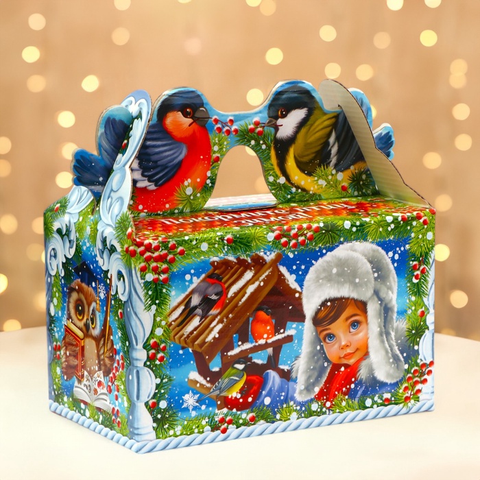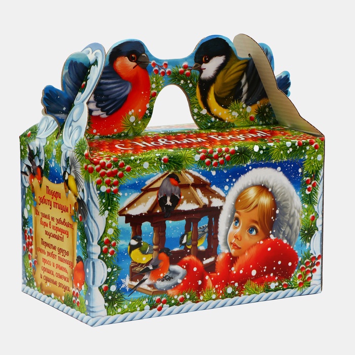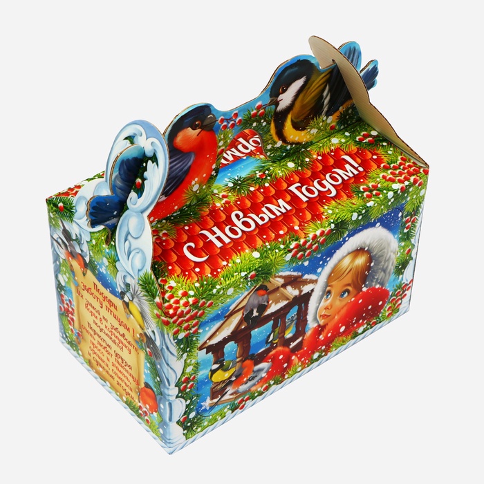 Коробка выполнена из качественных материалов, которые обеспечивают сохранность содержимого. Она имеет яркий и красочный дизайн, который отражает атмосферу Нового года.