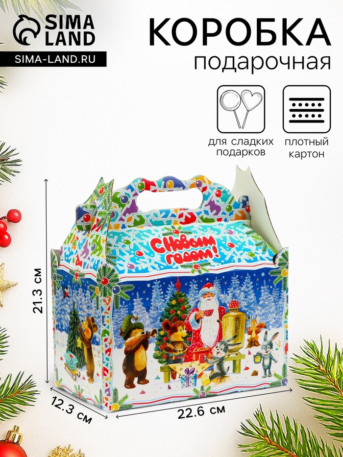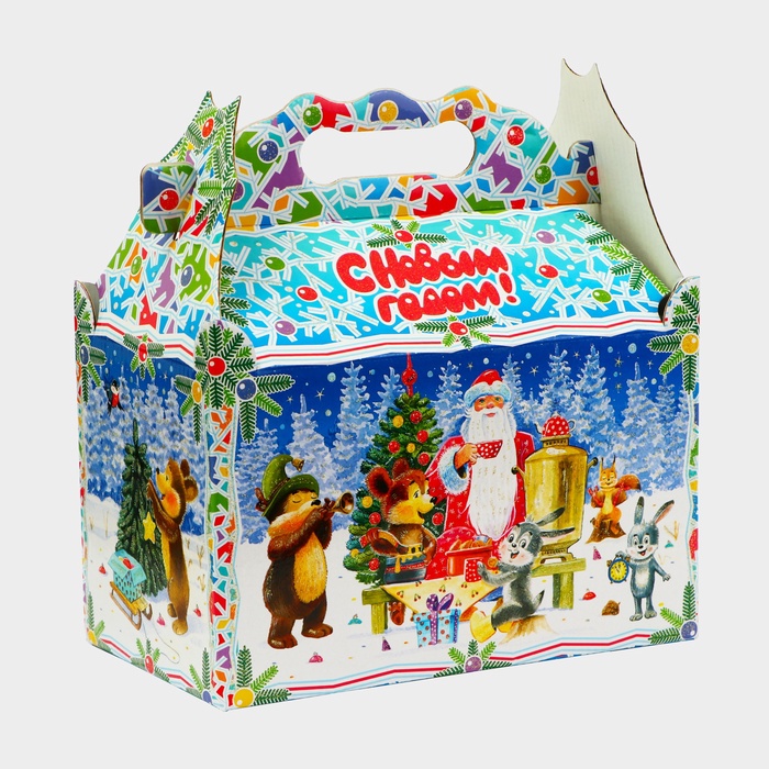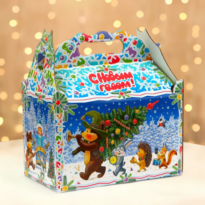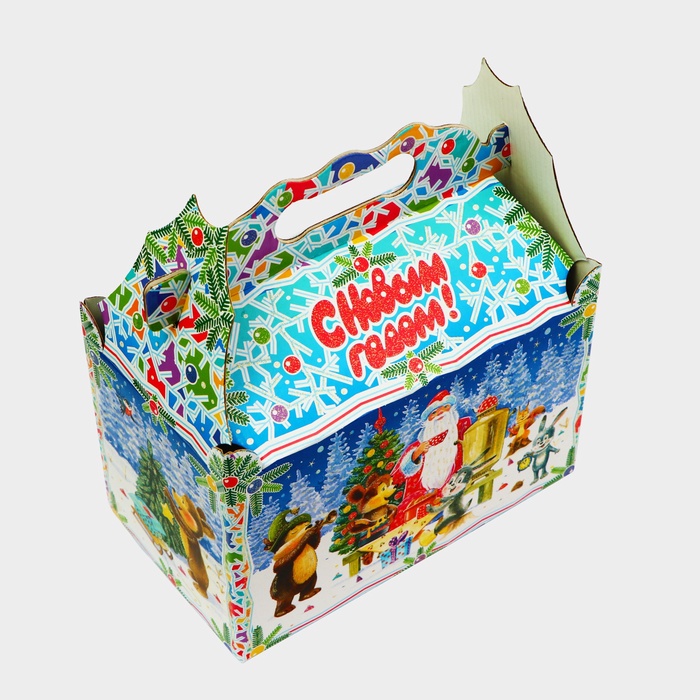 Коробка выполнена из качественных материалов, которые обеспечивают сохранность содержимого. Она имеет яркий и красочный дизайн, который отражает атмосферу Нового года.