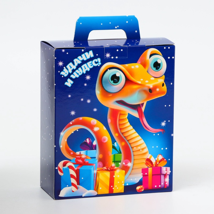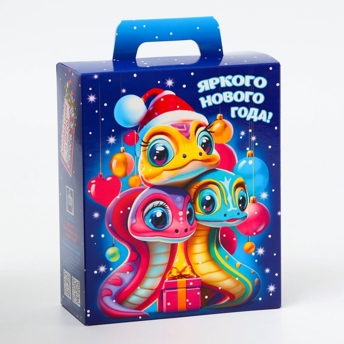 Коробка выполнена из качественных материалов, которые обеспечивают сохранность содержимого. Она имеет яркий и красочный дизайн, который отражает атмосферу Нового года.