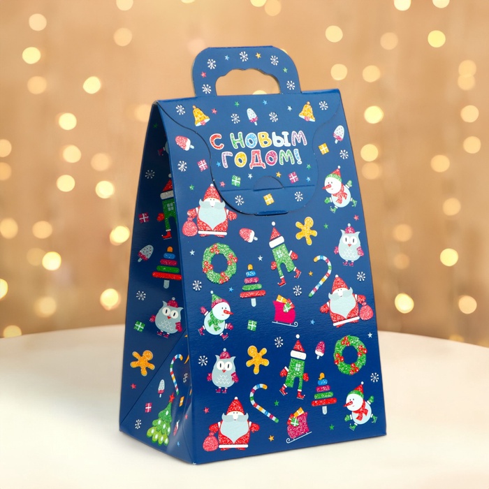 Коробка выполнена из качественных материалов, которые обеспечивают сохранность содержимого. Она имеет яркий и красочный дизайн, который отражает атмосферу Нового года.