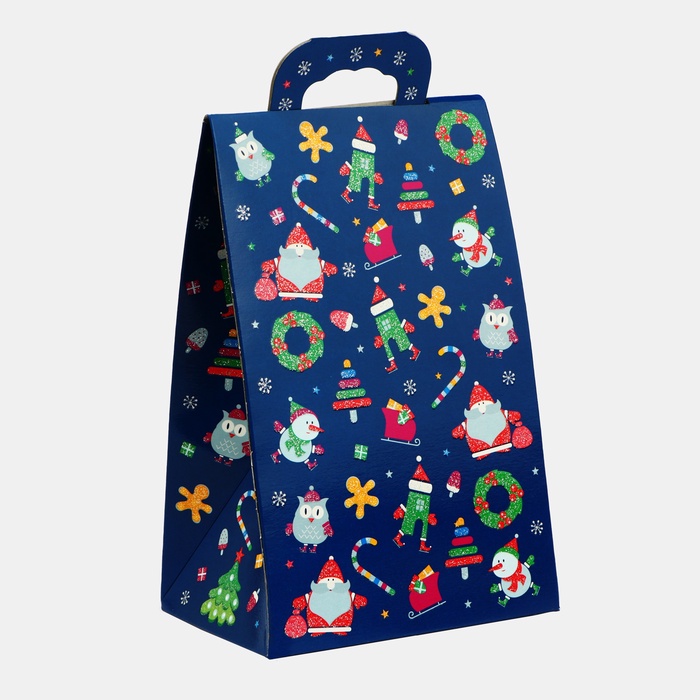 Подарочная коробка новогодняя Сумочка мини «Новогодний арт» 14×10×22.3 см