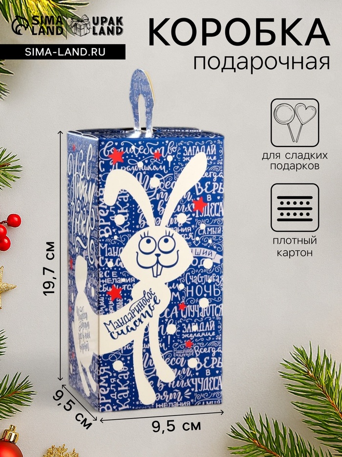 Новогодняя дружба в миниатюре! Коробочка «Кот и Заяц» — это очаровательная упаковка для небольших сладких подарков. Компактный размер и яркий дизайн делают ее идеальным выбором для милых новогодних сюрпризов.