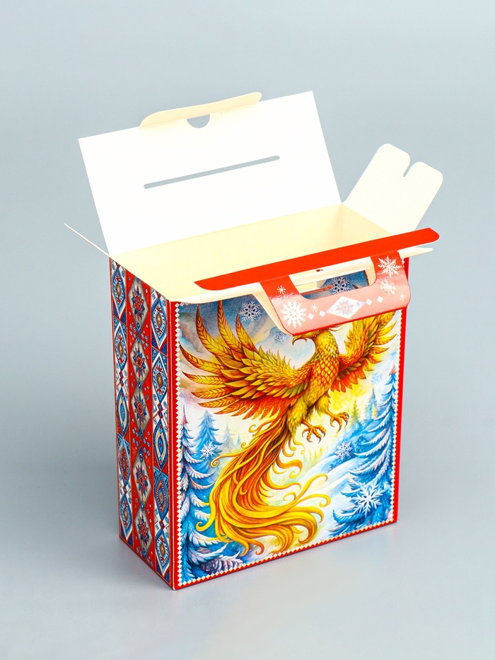 Готовое праздничное решение: Качественная печать сохраняет яркость рисунка, прочный материал защищает содержимое. Достаточно положить внутрь небольшой сюрприз — и подарок готов. Такая упаковка с символом года делает презент особенно актуальным.