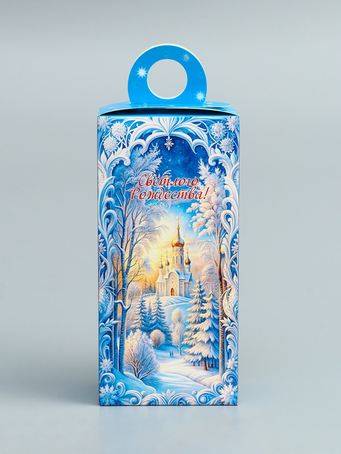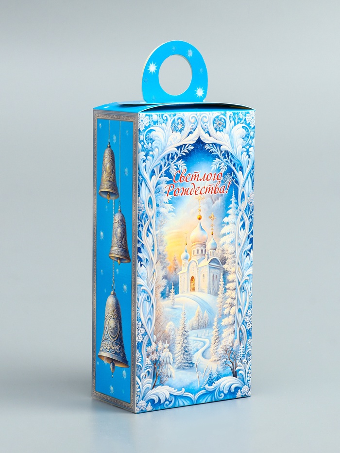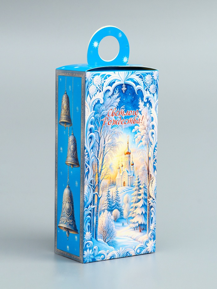 Звон колокольчиков в праздничной упаковке! Новогодняя коробка «Рождественский звон» — изысканное решение для небольших праздничных подарков. Её нежный голубой цвет и зимние узоры создают атмосферу волшебства.