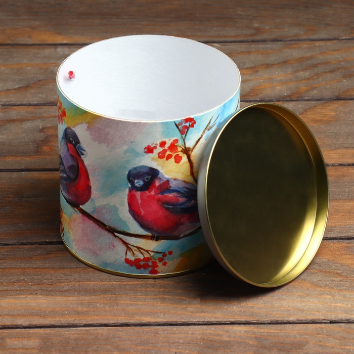 - Прочная конструкция: Сочетание картона и жести обеспечивает устойчивость формы. Защищает содержимое от повреждений.