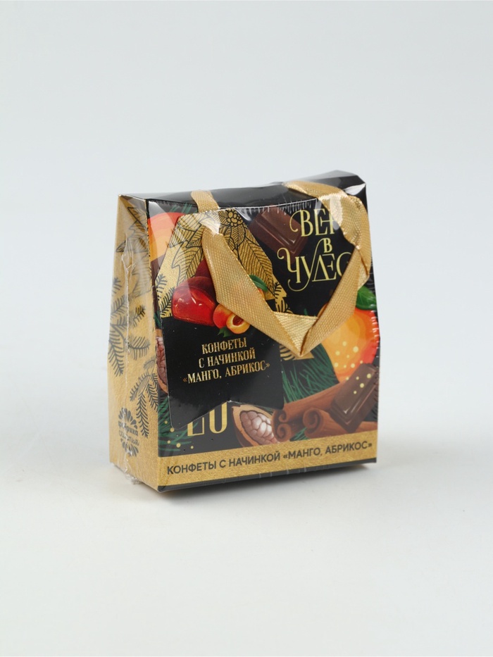 Состав: сахар, заменитель масла какао (масло пальмоядровое рафинированное, дезодорированное, фракционированное, гидрогенизированное), сыворотка молочная сухая, какао-порошок, эмульгаторы (лецитин Е322, Е476), начинка: сахар, жир специального назначения (масла растительные рафинированные, дезодорированные, модифицированные), сыворотка молочная сухая, мальтодекстрин, порошок манго сублимированный, ароматизатор натуральный «Манго», краситель пищевой – куркумин.