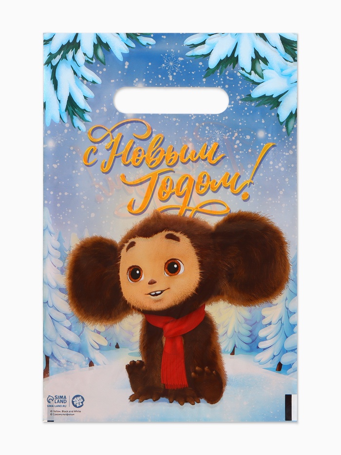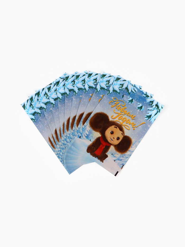 Подарочные пакеты, полиэтилен, набор 10 шт «Новый год», Чебурашка, 20 х 30 см