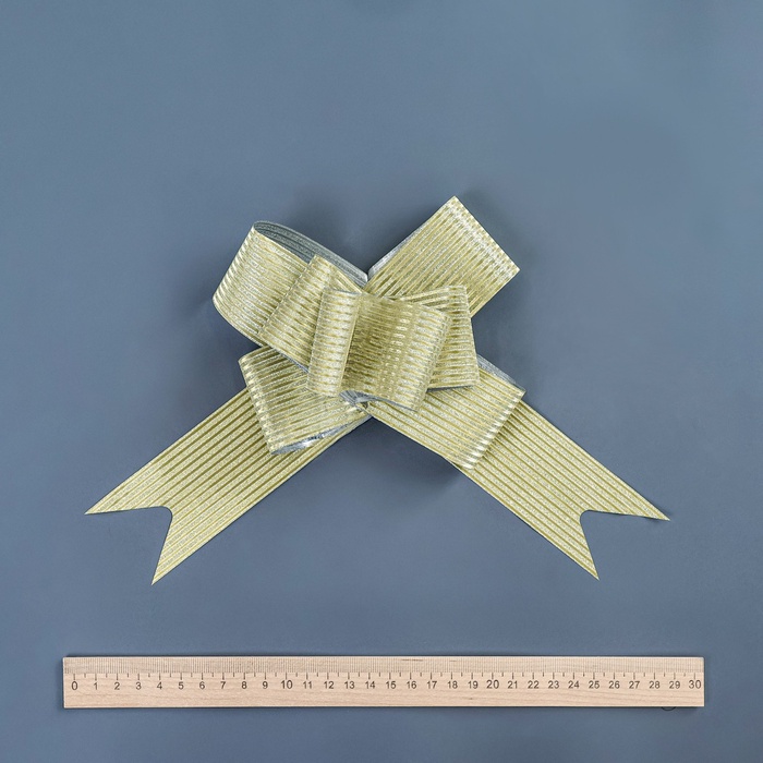 Бант-бабочка идеально подходит для украшения подарочных коробок, оформления свадебных аксессуаров или декора интерьера. Его золотистый оттенок гармонично сочетается с праздничной атрибутикой, добавляя торжественности любому мероприятию.