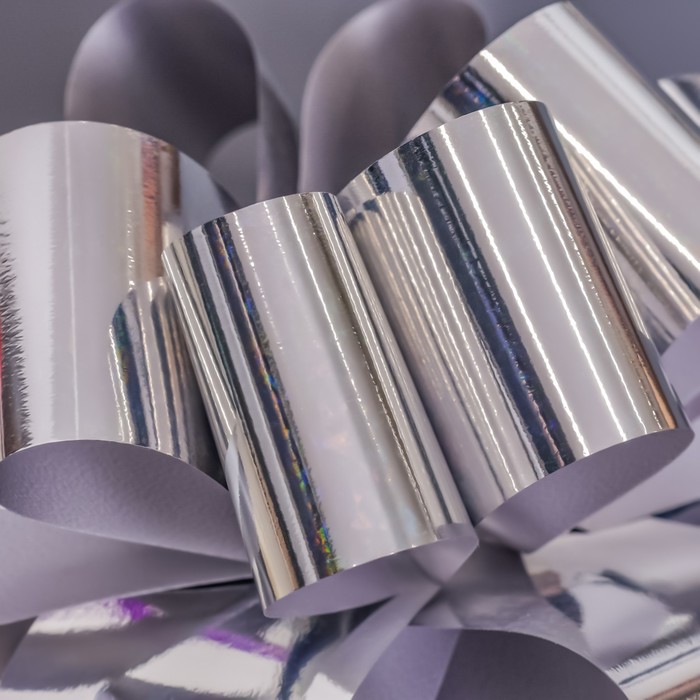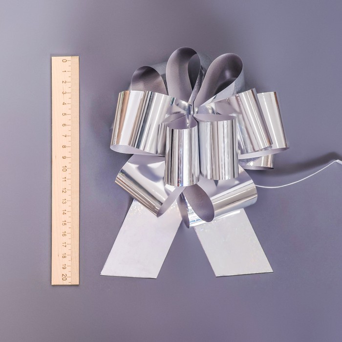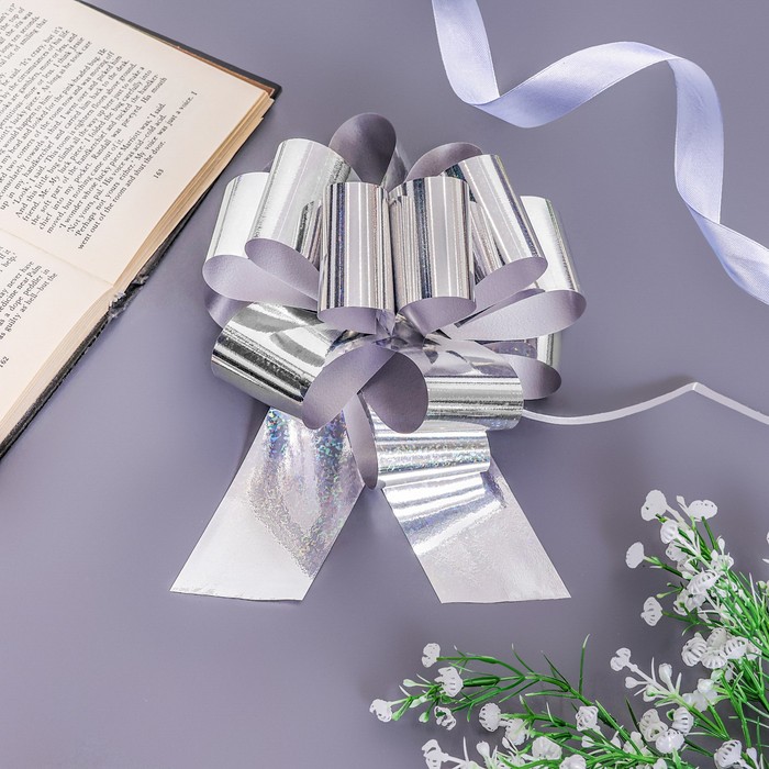 Подарочный бант - шар №5, серебро, для упаковки подарков