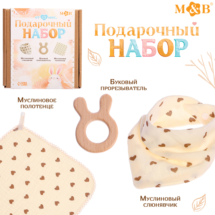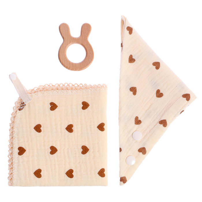 Ищете подарок для малыша? Набор с сердечками — идеальное решение! В него входят все необходимые для малыша вещицы: буковый прорезыватель, муслиновое полотенце и слюнявчик. Этот набор станет незаменимым помощником в уходе за ребёнком и подарит море радости.