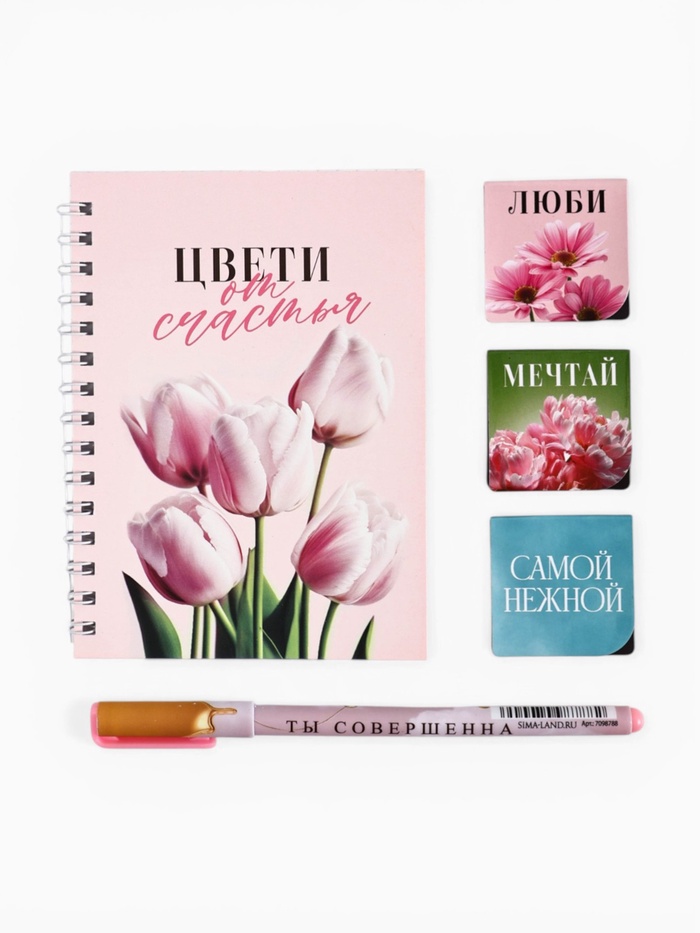 Подарочный набор: блокнот А6, 40 л., магнитные закладки, ручка «Цвети от счастья»