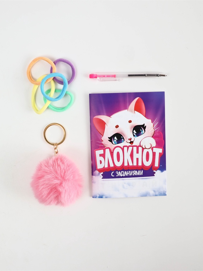 Подарочный набор: блокнот А6, 8 л. Резиночки 10шт, брелок-пушистик, мини ручка "Единорог"