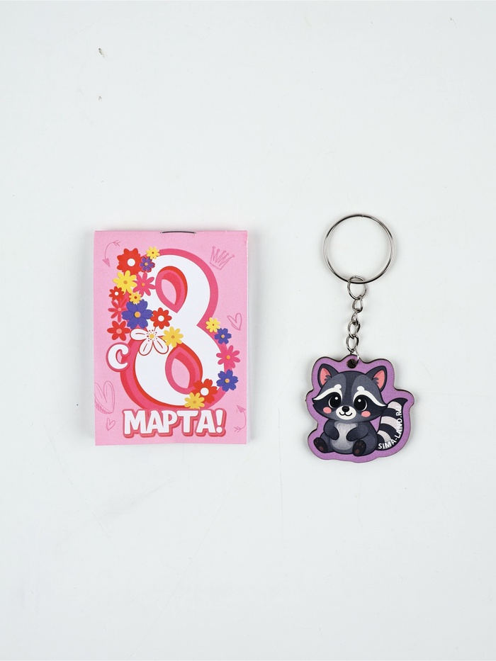 Подарочный набор: блокнот А7, 16 листов и деревянный брелок "С 8 Марта"