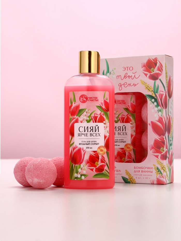 Подарочный набор «Это твой день», гель для душа, 250 мл и бомбочки для ванны 4 шт., Чистое счастье