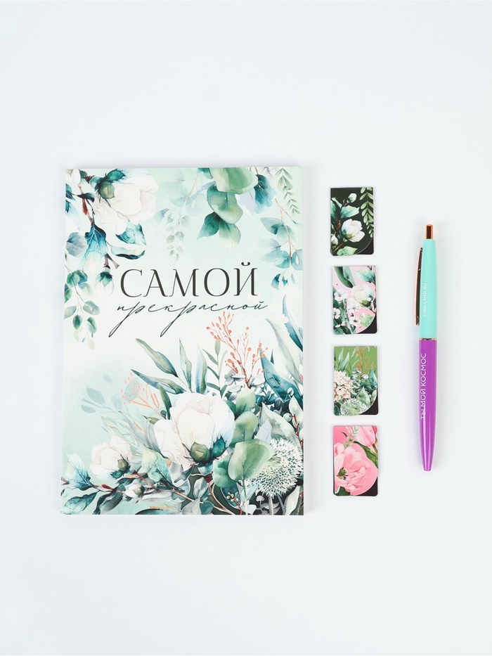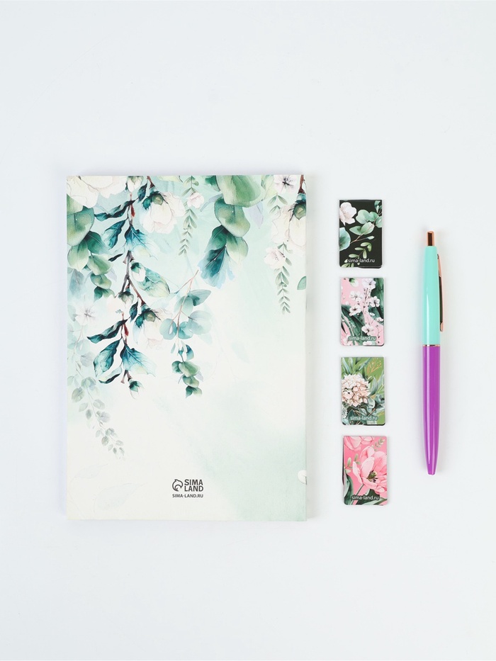 Подарочный набор, ежедневник А5, магнитные закладки, ручка «Расцветай от счастья»