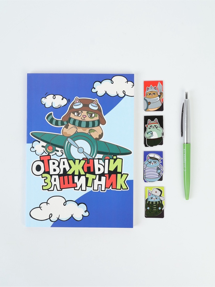 Подарочный набор, ежедневник А5, магнитные закладки, ручка «Юный герой»