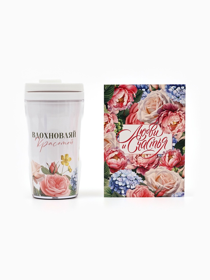 Подарочный набор, ежедневник А6, 80 л., термостакан 250 мл «Любви и счастья»