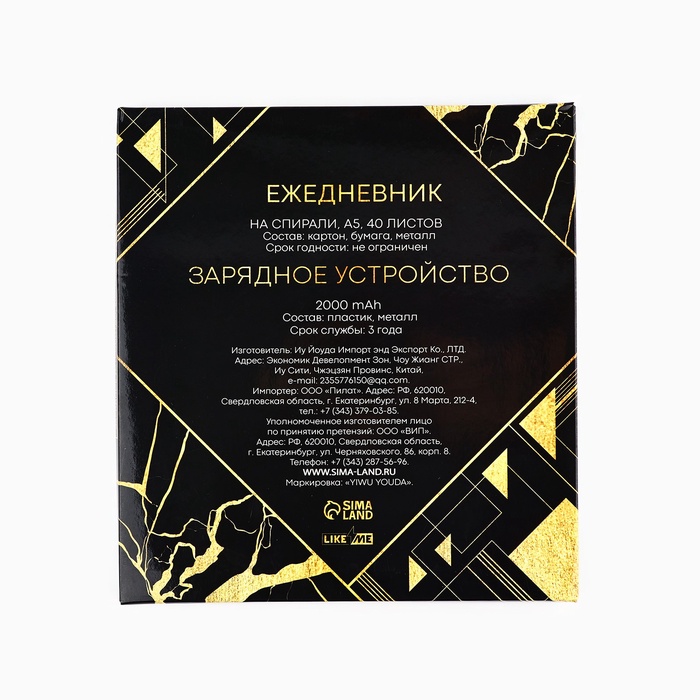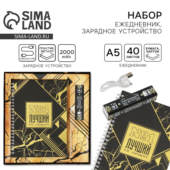 В набор входит ежедневник на спирали формата А5 (40 листов) и зарядное устройство 2000 mAh. В комплекте к внешнему аккумулятору идёт отдельный шнур для разъема USB и micro USB. Подходит для пополнения заряда аккумулятора мобильных телефонов, планшетов, MP3-плееров, цифровых фотокамер и других устройств.