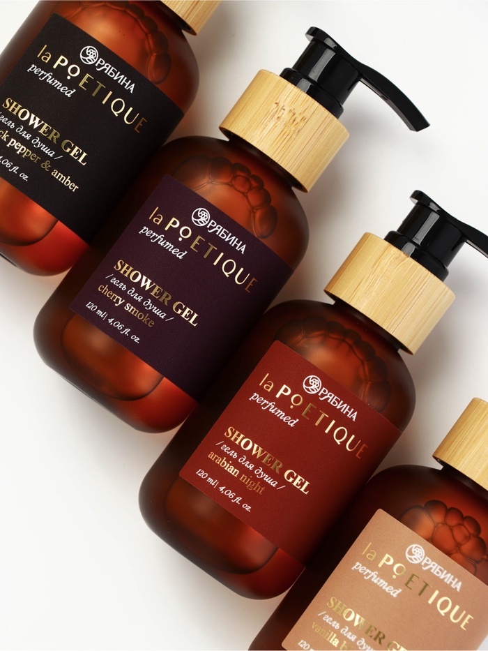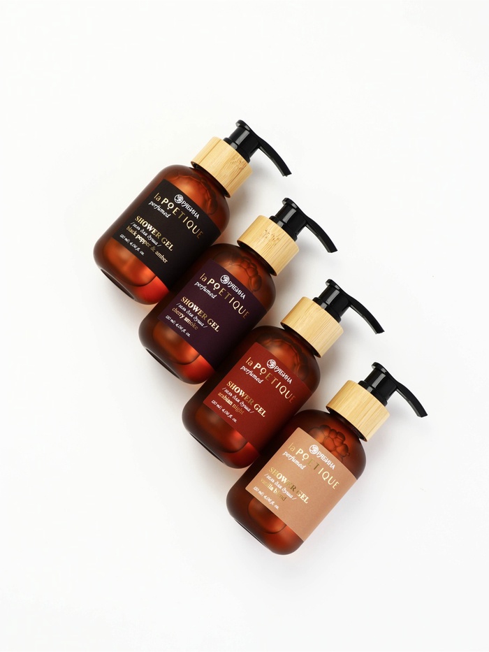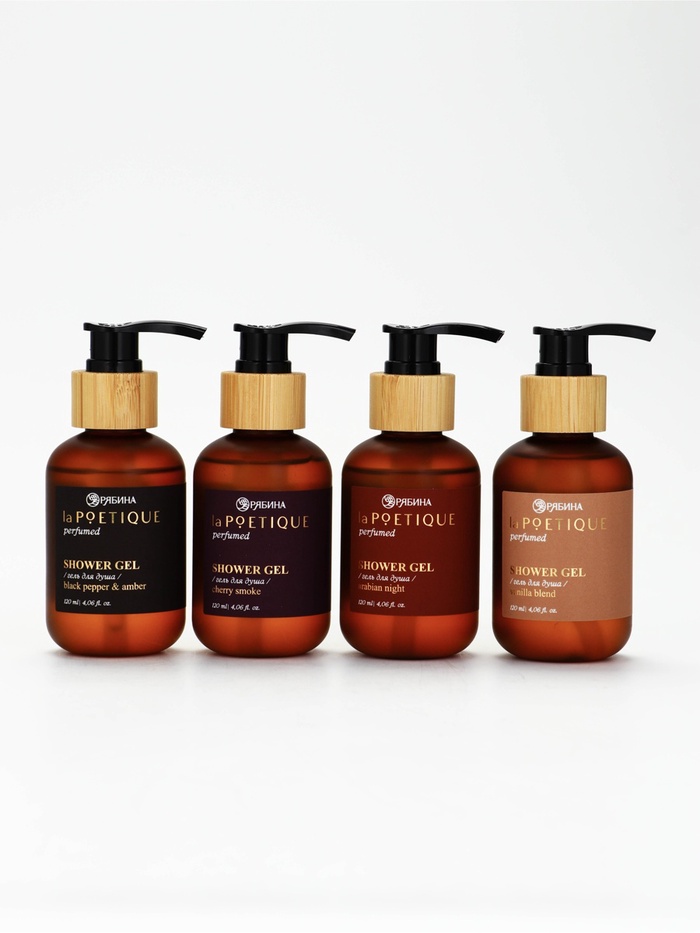 Подарочный набор гель для душа 4×120 мл, по мотивам ароматов султан, перец, ваниль, вишня, POETIQUE