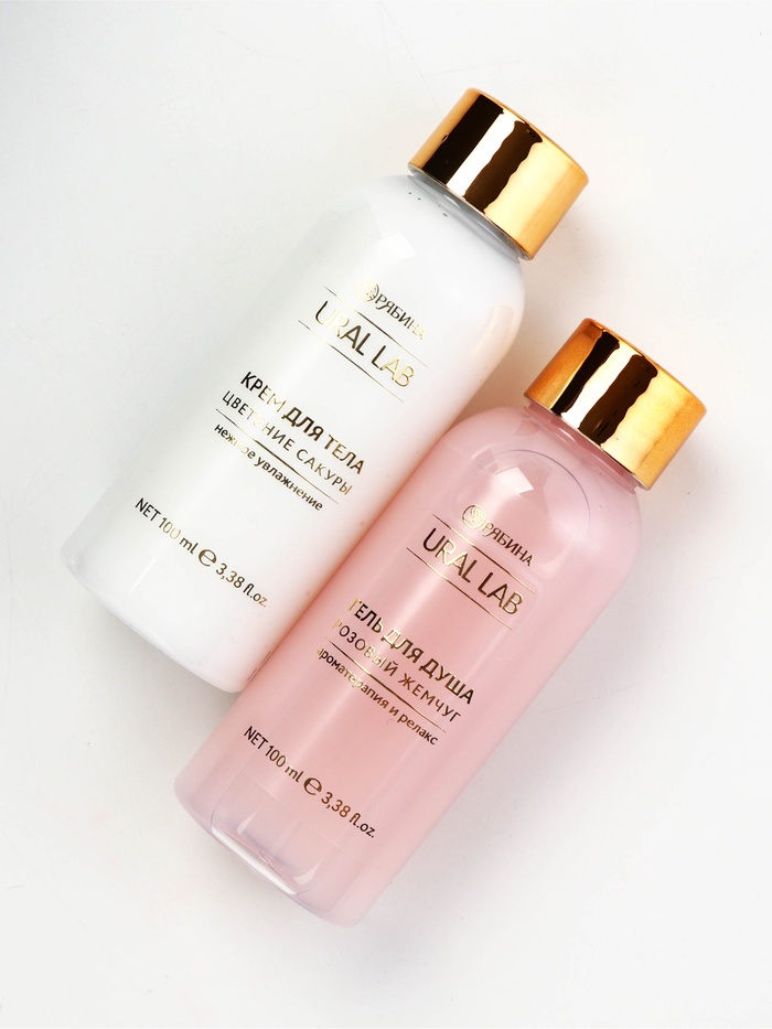 Подарочный набор: гель для душа и крем для тела 2 шт х 100 мл, мочалка, URAL LAB