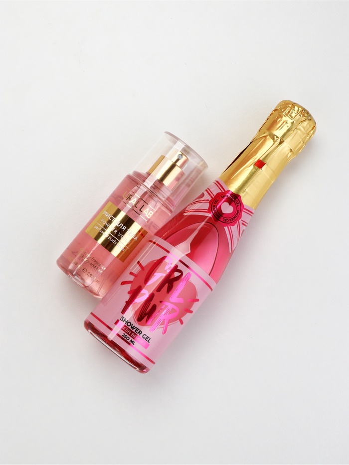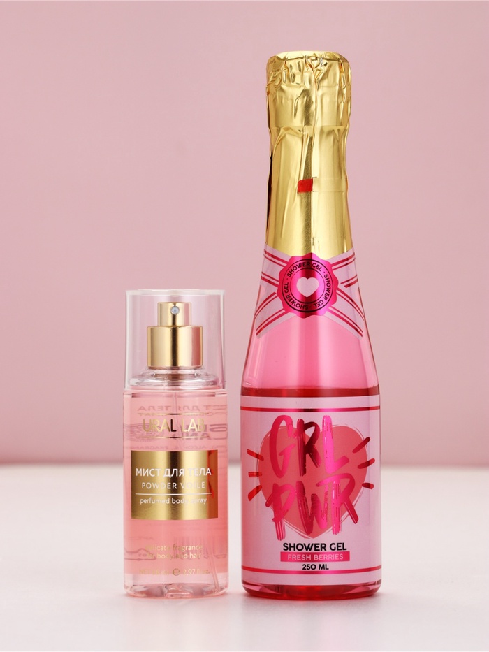 Подарочный набор: гель для душа шампанское и мист для тела,Чистое Счастье