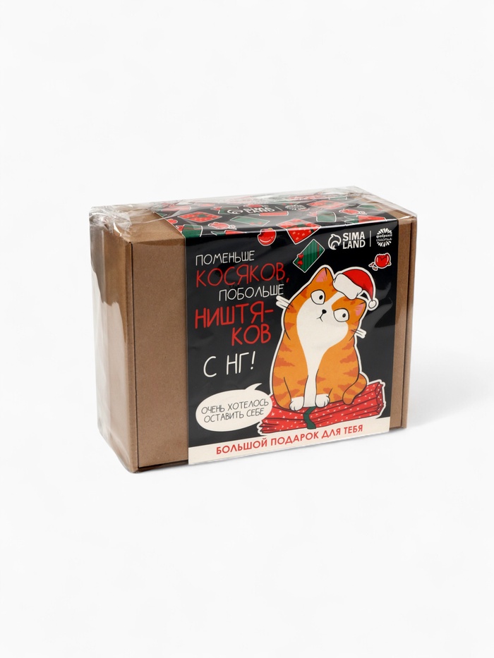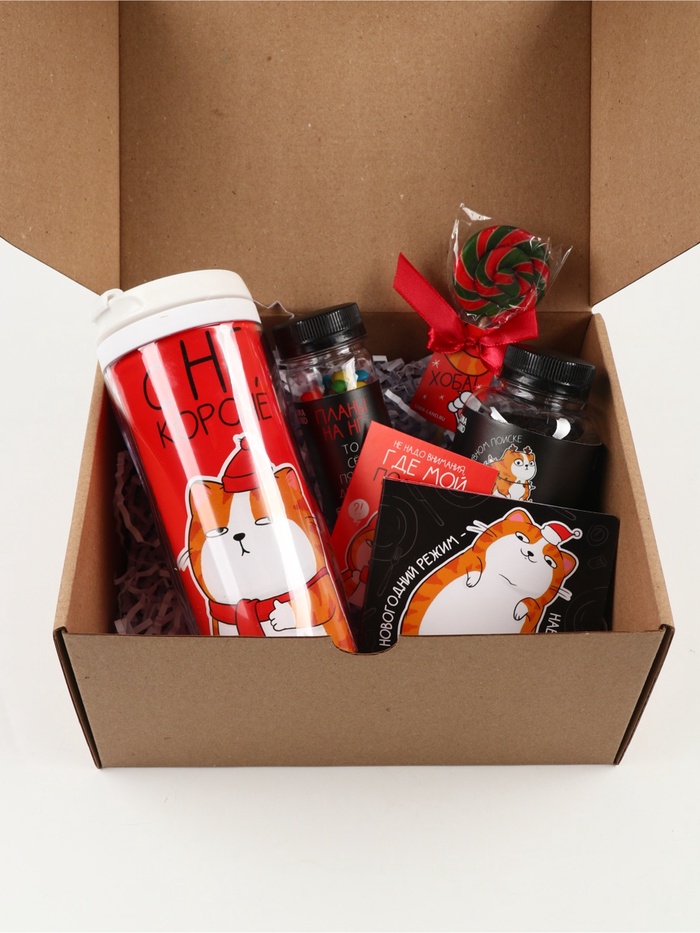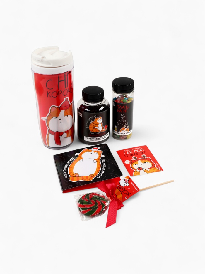 Подарочный набор гифтбокс «Поменьше косяков, побольше ништяков», чай, драже, шоколад, термостакан, леденец