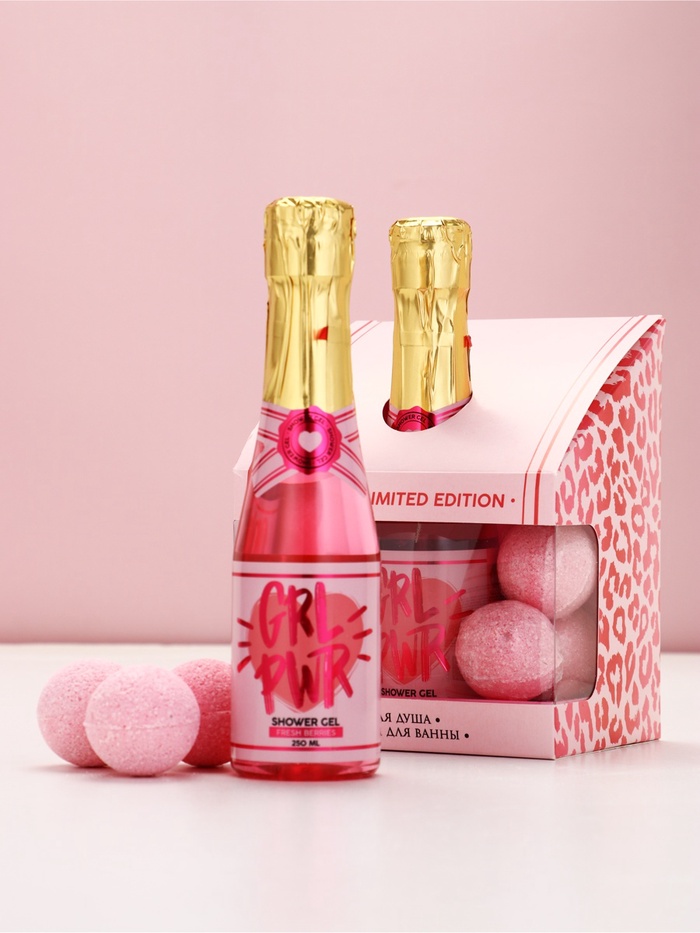 Подарочный набор GRL, гель для душа шампанское и бомбочки для ванны, Чистое Счастье