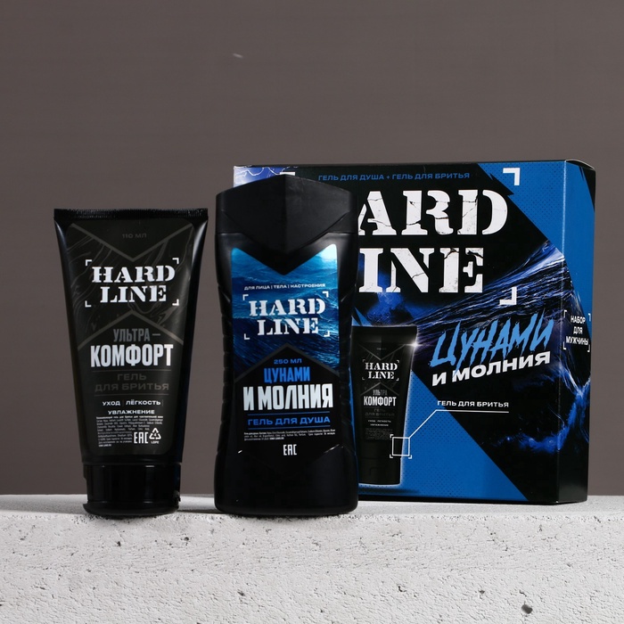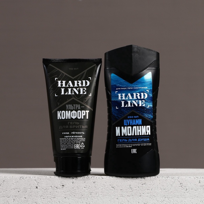 Подарочный набор косметики «Цунами и молния», гель для душа 250 мл и гель для бритья 110 мл, HARD LINE