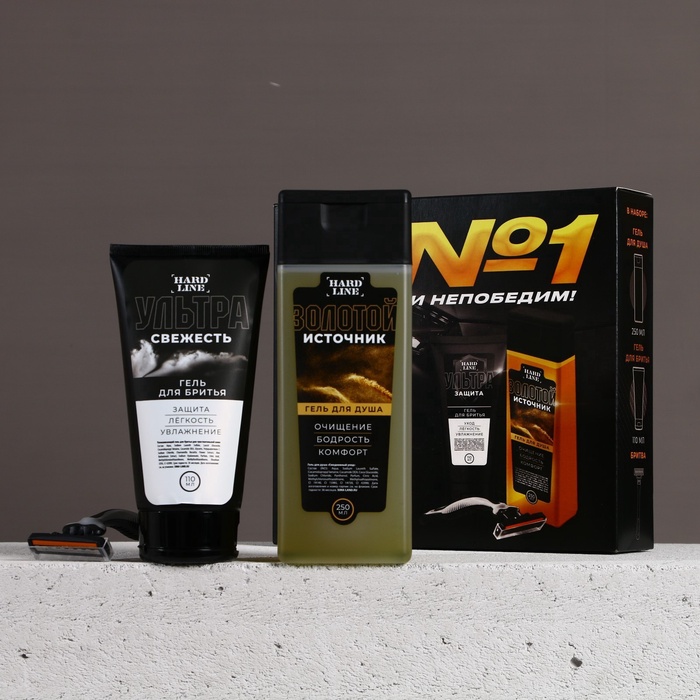 Подарочный набор косметики «Ты №1!», гель для душа 250 мл, гель для бритья 110 мл, бритва, HARD LINE