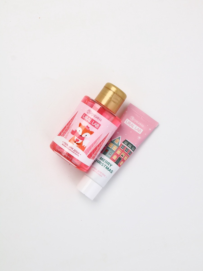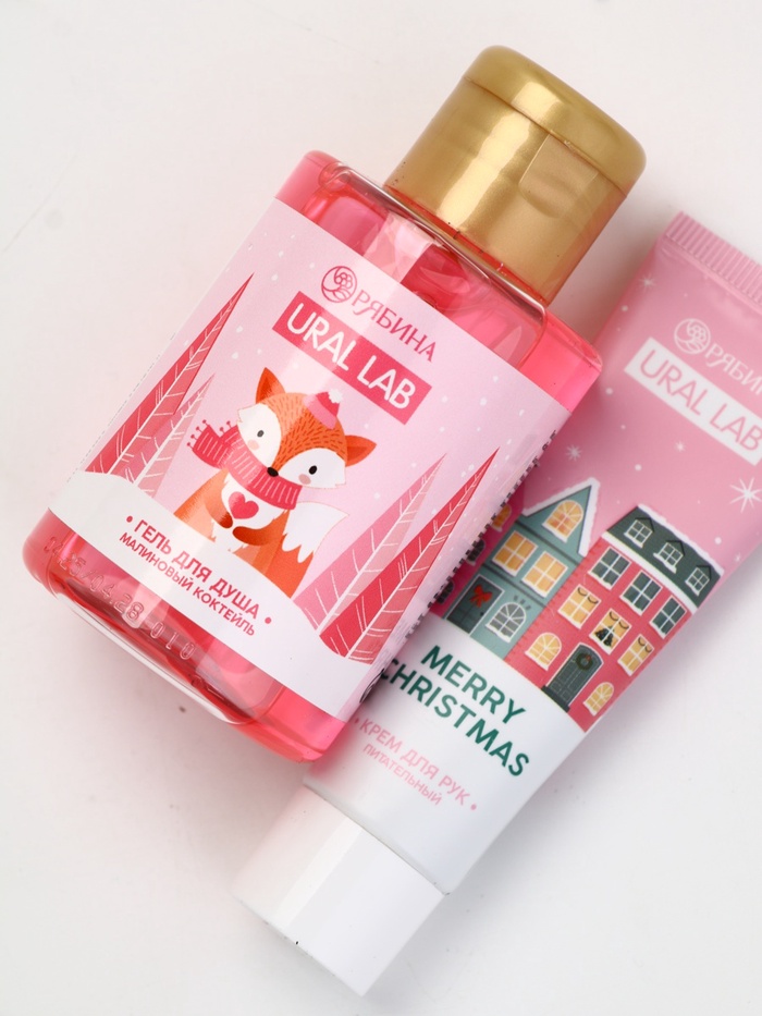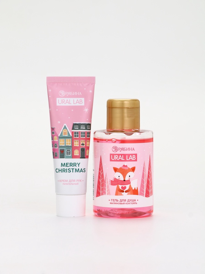 Подарочный набор косметики в мешке: крем для рук, пилочка, гель для душа, аромат малиновый коктейль, URAL LAB