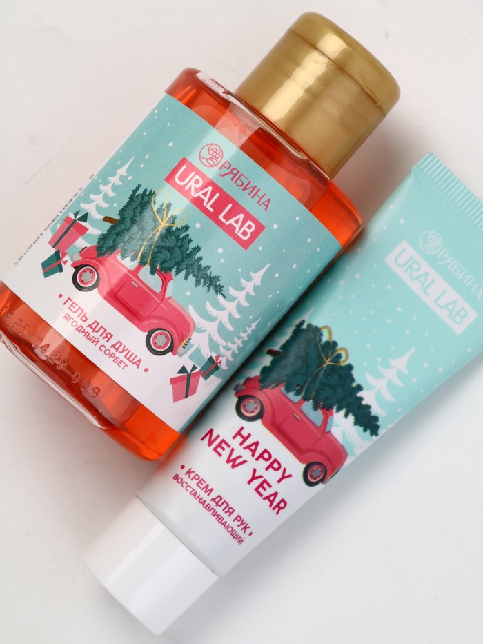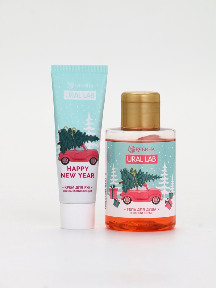 Подарочный набор косметики в мешке: крем для рук, пилочка, гель для душа, аромат ягодный сорбет, URAL LAB