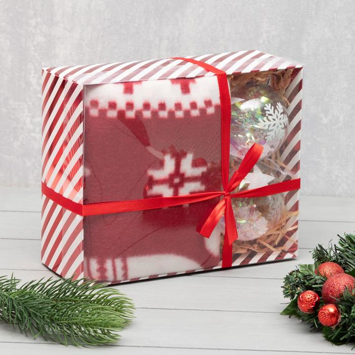 Подарочный набор LoveLife: плед 150*130см «Новогодний олень» с новогодними игрушками