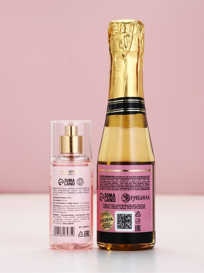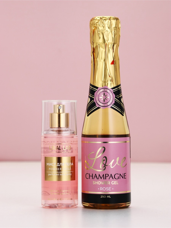 Подарочный набор «Любовь», гель для душа шампанское и мист для тела, Чистое Счастье