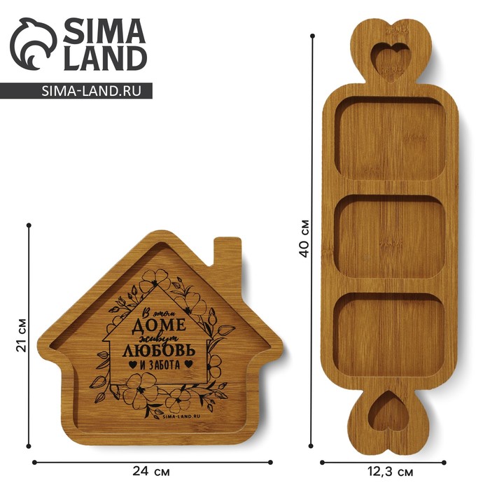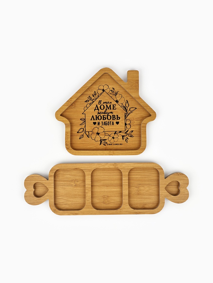 Подарочный набор менажниц деревянных «Домашние мелочи», 2 шт. домик 24×21 см, менажница 40×12.3 см
