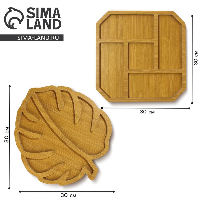 Подарочный набор менажниц деревянных «Посуда Уют »: монстера 30×30 см, менажница 30×30 см