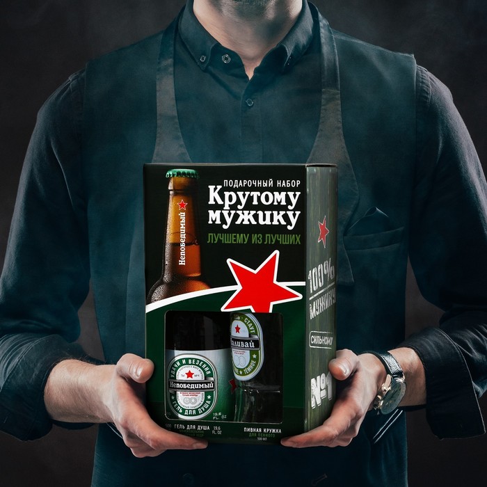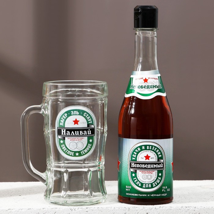 Подарочный набор мужской "Крутому мужику", гель для душа, 500 мл и пивная кружка, 500 мл