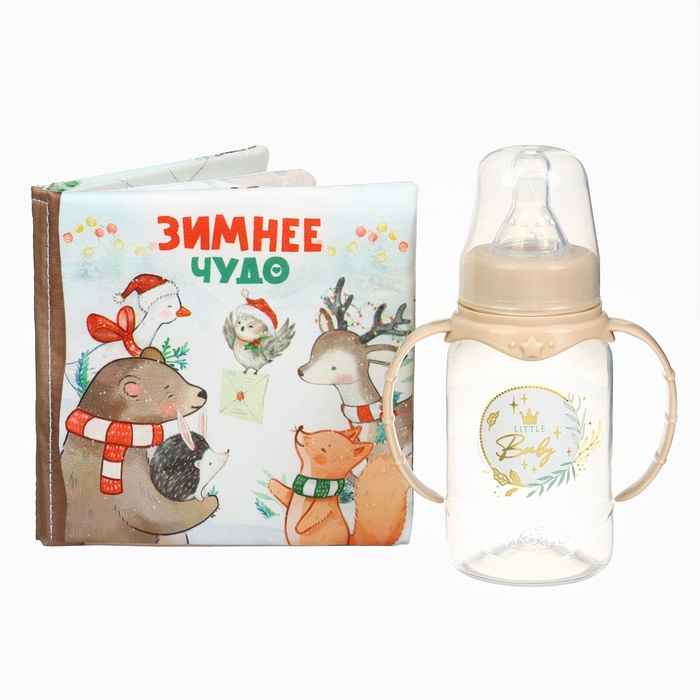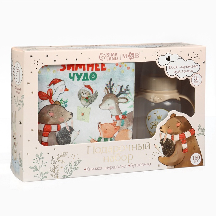 Подарочный набор из книжки-шуршалки и бутылочки для кормления в яркой упаковке станут отличным подарком для малышей!